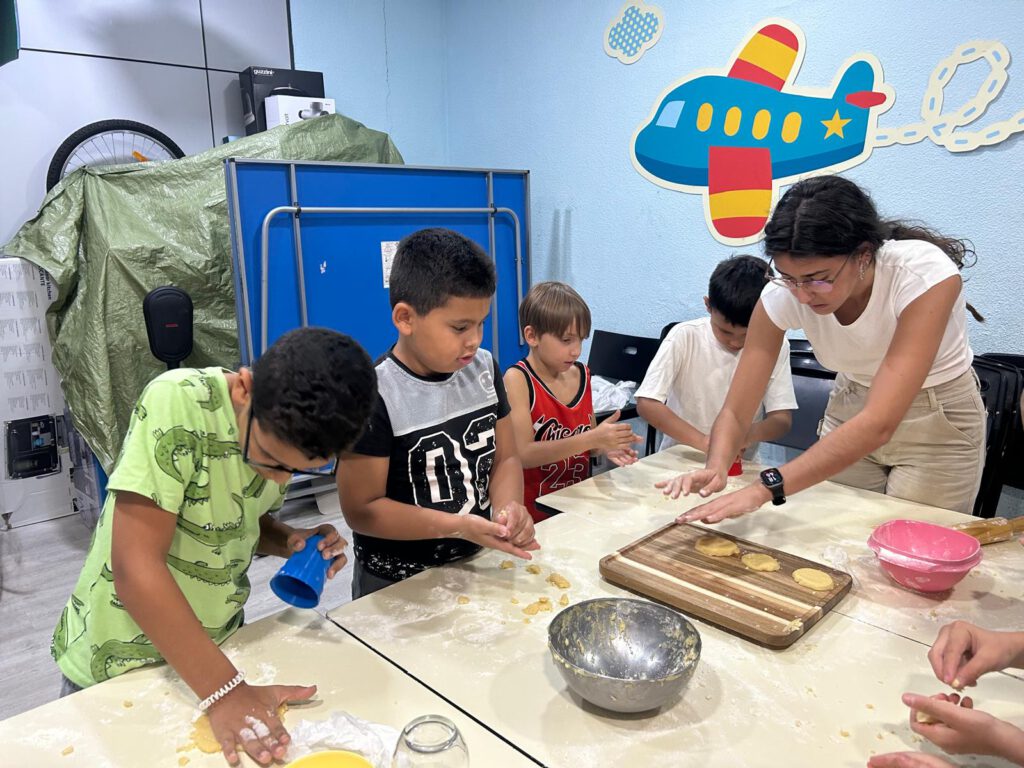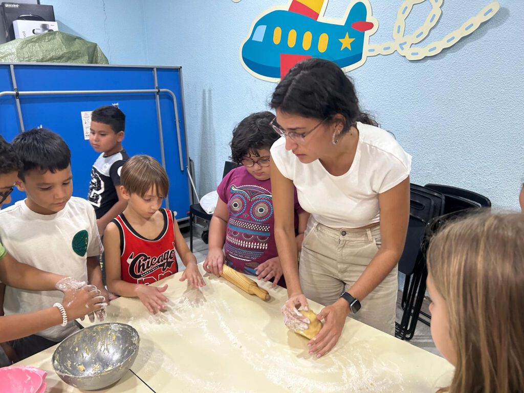 Posteriormente, el grupo elaboró perrunillas, un dulce típico extremeño. Durante la actividad, los y las menores prepararon la masa, le dieron forma y la hornearon, disfrutando así de un proceso colaborativo que combinó la tradición gastronómica con el trabajo en equipo.