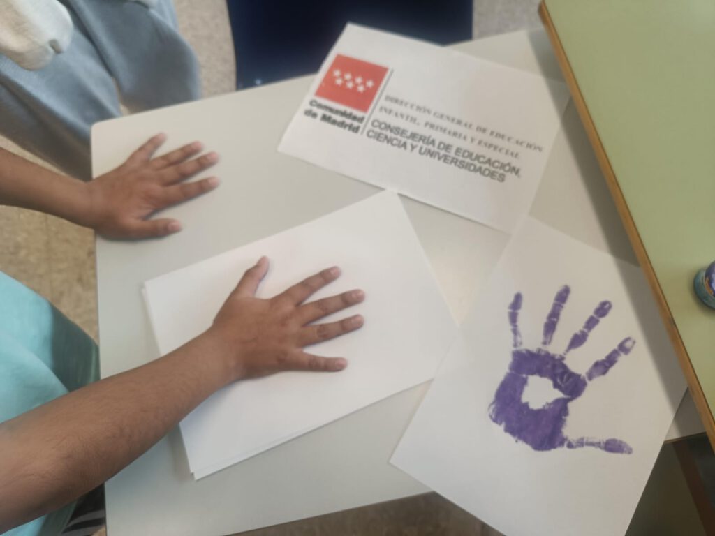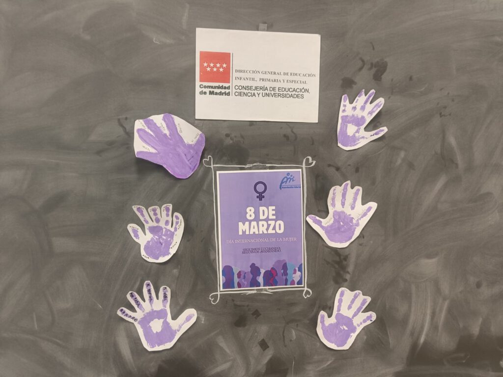 Entre las propuestas realizadas destacó un taller creativo en el que el alumnado elaboró manos moradas con cartulina, color representativo de la lucha por la igualdad. En cada uno de los dedos, los niños y niñas escribieron el nombre de una mujer importante en sus vidas, reconociendo su valía, su fuerza y la influencia positiva que tienen en su día a día.