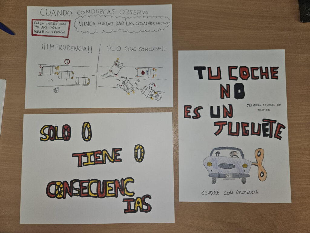 Como parte de la actividad, los y las participantes elaboraron carteles de sensibilización, transmitiendo mensajes de responsabilidad y seguridad vial, promoviendo así la prevención de accidentes y fomentando un compromiso activo con la seguridad en la carretera y en la vía pública.